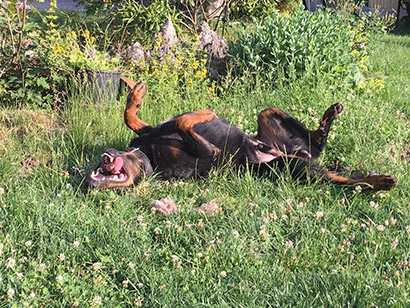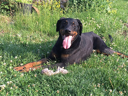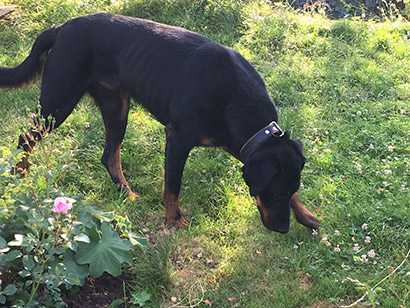 Die Fotos sprechen für sich; neben seinem neuen Frauchen hat er auch seinen Garten Eden gefunden, er hüpft vor Lebensfreude umher und sein Glück steht ihm ins Gesicht geschrieben Viel Glück, hübscher Bub!