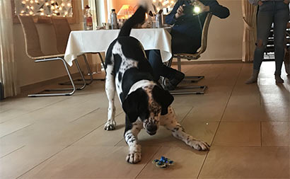 Jeden Tag bin ich überglücklich diesen wunderbaren Hund an meiner Seite zu haben. Er ist ruhiger geworden und wir sind ein eingespieltes Team. Er hebt mit Begeisterung alles auf, was in unserem Haus auf dem Boden liegt.