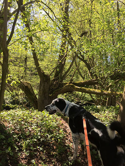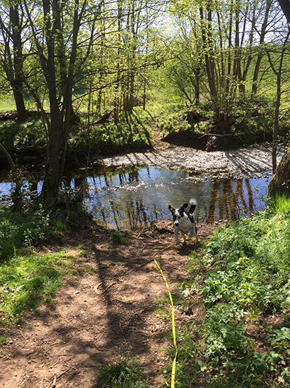 Bei uns im Bundesland Niedersachsen ist vom 1. April bis zum 15. Juli leider Leinenpflicht. Aber Lucky kann im Hundewald oder in unserem großen Garten frei rennen und spielen.