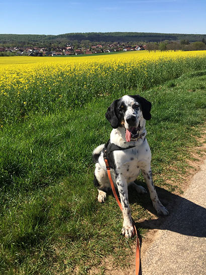 Meine Freunde sagen lächelnd, er sei ein „Angeberhund“. Jedem erzähle ich, dass er aus dem Tierheim kommt. Wir sind ein sehr auffälliges Team und werden oft angesprochen. Gerade in der Corona-Zeit ist es oft mein einziger Außenkontakt mit Menschen und Hunden, wenn ich Spazieren gehe.