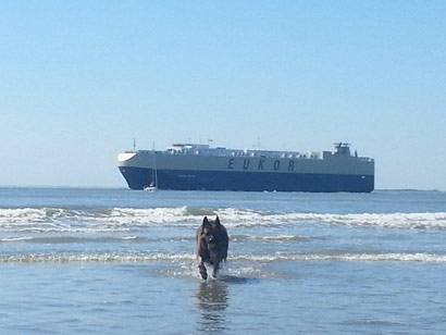 die hat kein Angst für Wellen. Nur viel spielen meistens