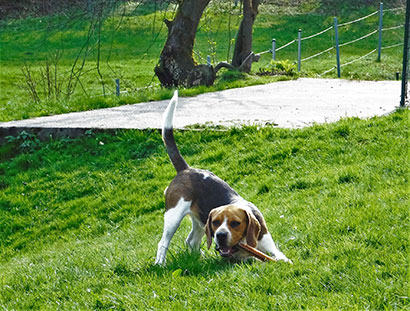 Ich schreibe Ihnen diese Mail, weil wir alle total begeistert sind von Otto (Mocca)! Als er heute unsere Hunde zum ersten Mal in seinem und Brunos "Revier" herumlaufen sah, checkte er sie kurz ab (was wollt Ihr denn hier?) und spielte dann mit ihnen bis zum Umfallen. Heute Abend holten wir unsere Hunde wieder ab - alle waren vollkommen platt. Unser Sohn erzählte uns, dass sie den ganzen Tag über zusammen waren, als würden sie sich schon immer kennen. Otto ist wirklich ein Supertyp, und wir sind alle froh und dankbar, dass er nun zur Familie gehört. Er hat sich sehr gut eingelebt, macht überhaupt keine Probleme, wird von uns allen geliebt.