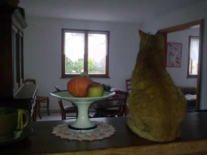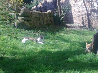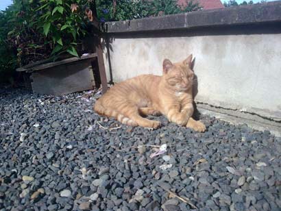 Seit Marley bei uns ist, jetzt fast 6 Monaten, hat er gelernt zu sprechen, besonders wenn er was nicht tun soll !! Wir waren ganz erstaunt wie schnell er sich bei uns eingelebt hat, ganz neugierig und cooool, und wie wohl er sich fühlt ! Echt ein lustiger Kerl, besonders als er "endlich" nach Draussen durfte, denn am liebsten jagt er Spinnen, Fliegen und alles was sich im Grünen bewegt ! Er ist auch ein kontaktfreudiger junger Kater, der sich gerne mit Nachbar's Kätzin trifft