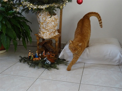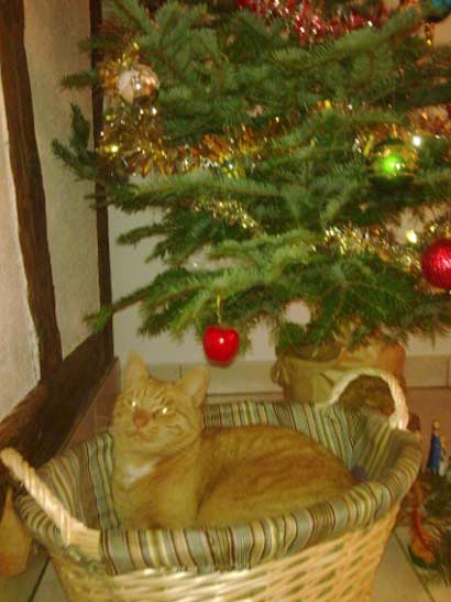 voila presque 1 an, qu'il est à la maison et on peut dire qu'il se l'est bien approprié parce qu'il fait le tout fou tous les jours, en faisant des sautant partout comme un poney sauvage. Il s'avère que c'est un chat très gourmand mais que de croquettes. Il est super curieux et t'accompagne partout, cherchant toujours une présence s'en forcément être collé à toi. Avec le temps, il devient moins jaloux avec Grisy, la petite femelle semi-sauvage qui rentre avec le froid. Ils cohabitent plutôt bien en intérieur, chacun à trouver sa place, sauf quand Monsieur à envie de jouer avec elle, là ça se passe moins bien, car elle ne veut pas jouer avec lui et le lui fait comprendre, du coup il est frustrer et il va bouder dans son coin =). Il est très expressif tant physiquement qu'oralement surtout quand on le gronde. Mais en ce moment, il a trouver un nouveau jeu, jouer avec les boules de noël et les guirlandes. J'adore surtout quand il tire sur la guirlande et que je le gronde. =) Mais comment arriver à le gronder où lui résister avec sa petite bouille d'ange, moi je dit toujours ce méfier des beaux goss. lol En conclusion, j'ai l'impression d'avoir adopté un bébé surtout quand il dors et qu'il découvre quelque chose, hihi