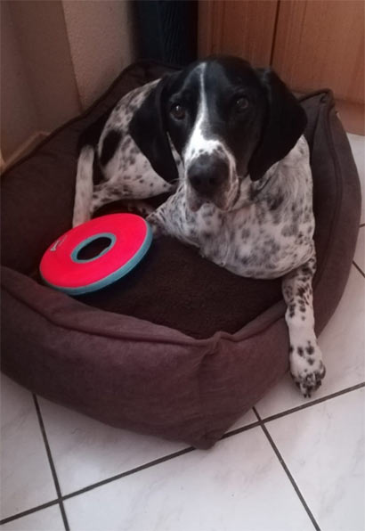 Seit ich hier eingezogen bin habe ich ganz schön viel erlebt: ich habe den Wald kennengelernt,festgestellt wie schnell ich rennen kann, ich kann schwimmen und war im Schnee, habe schulterhohe Löcher in den Garten gebuddelt und mir abends einen Platz auf dem Sofa erobert. Außerdem habe ich gelernt, was "spielen" ist. Anfangs habe ich schon etwas an meiner Familie gezweifelt. Immer haben sie mir so komische Sachen angeboten, essen konnte man die nicht. Irgendwann habe ich gemerkt wieviel Spaß es macht mit Herrchen und Frauchen oder den zweibeinigen Welpen zu toben.