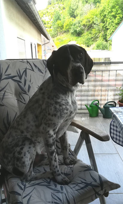 Ihr wißt ja, ich bin ein Jagdhund.Und im Herbst soll ich mit zur Jagd. Darum üben wir fleißig Fährten suchen. Da legen sie mir mit einem Stück Wildschwein eine Fährte und einige Zeit danach muss ich dann los und denen zeigen, wo sie das vergessen haben. Wenn ich das zurück bringe sind immer alle begeistert und loben mich. Und Leckerli gibt´s auch wieder, super! Ich habe zwei Freundinnen mit denen ich oft spazieren gehe oder die ich unterwegs treffe. Wir verstehen uns super. Mit anderen Hunden habe ich nicht soviel zu tun. Die interessieren mich draussen nur kurz zum Hallo sagen.