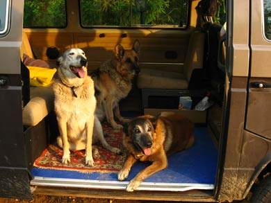 Nachdem Laisa im Dezember leider verstorben ist, waren Klaus und ich uns einig, das zwei große, alte Hunde eigentlich genug sind. Dann habe ich Kessi auf der Homepage gesehen und sieben Tage später abgeholt! Und so sieht sie drei Monate später, nach einer Krebsoperation, mehreren Röntgen-, Ultraschall-, Blutuntersuchungen und einer Zahnsanierung aus. Und natürlich viel schmusen, spazierengehen und VW-Bus fahren. Sie hat Mike um die Pfote gewickelt, sie darf sich alles erlauben, was Azo nicht darf. Azo Süßbär wiederum ist sehr froh, das wieder jemand vor ihm im Dunkeln läuft, im Gebüsch schnuppert und ihn beschützt. Wir haben so viel zu lachen mit unseren drei Hunden und sind froh, das wir uns für noch einen alten Hund entschieden haben.
