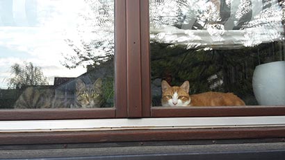 Anfänglich noch vorsichtig erkunden sie die Umgebung, trauen sich von Tag zu Tag mehr. Der Rückzug durch die Katzenklappe, die auf die Chips der beiden programmiert ist, funktioniert prima. Von anfänglich einer halben Stunde sind wir nun bei rund um die Uhr " open door " - es ist und bleibt ein Traum mit den beiden.