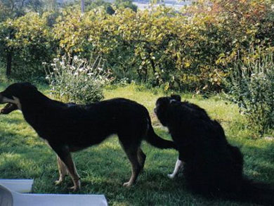 Es gab noch nie Streit zwischen unseren beiden Hunden .