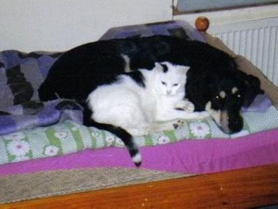 Sie teilen sich noch immer den Fressnapf und den Schlafplatz