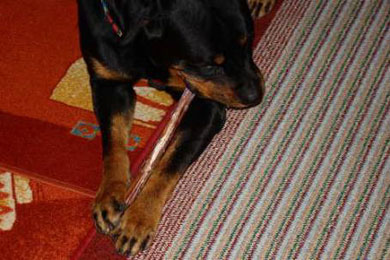 (Beschäftigt mit einem Kauknochen ...)