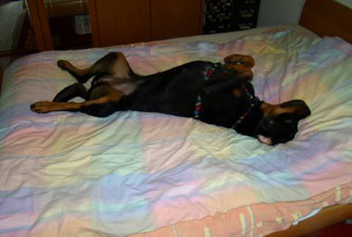 Aber der liebste Platz ist bei Tag und Nacht doch mein Bett. Nachts lasse ich sogar mein Herrrle mit drin schlafen (er meint ja es sei sein Bett)