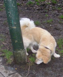 Milou erschnüffelt alles, was auf seiner Wegstrecke zu
