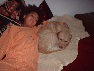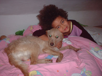 Moritz geht es gut- draussen ist er ein Wirbelwind, und drinnen eher ein Sofakissen. Paula und ich sind ganz glücklich mit ihm, und Loulou, unsere 'alte Dame', hat ihn mittlerweile auch angenommen.
