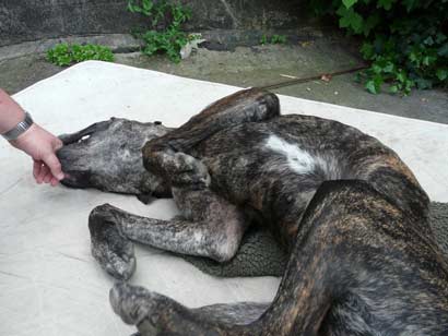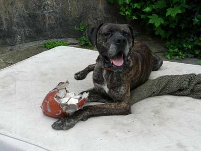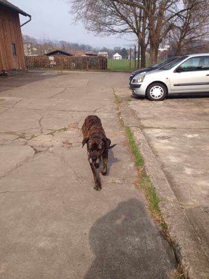 Er hat auch überhaupt keine Probleme mit geschlossenen Räumen gehabt, ist gleich den ersten Abend in die Diele in sein Korb gegangen. Murphy ist sehr aufgeschlossen und freundlich unseren Mitarbeitern gegenüber auch mit anderen Hunden draußen hat er keine Probleme. Zweimal hat er es auch geschafft zu entschwinden und ist alleine spazieren gegangen aber auch eher freundlich und beschäftigt mit den vielen Gerüchen in der weiten Welt. ;)