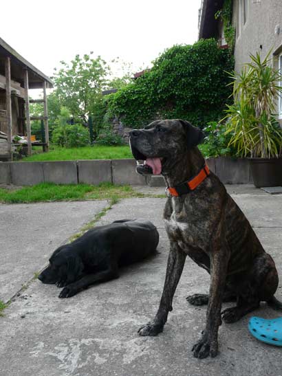 "Ja der Murphy macht sich sehr sehr gut... Auch mit der Luzie klappt es gut sind mittlerweile ein gutes Team und laufen gemeinsam bellend ans Tor und passen auf!!!