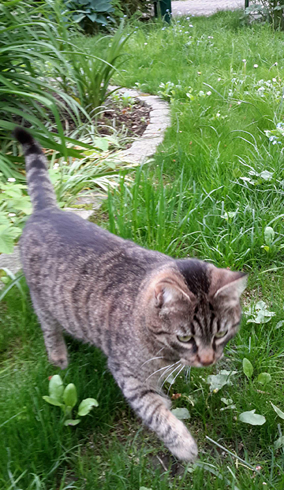 hier ein kleiner Bericht über Billies (vormals Mystere) ersten Sommer bei uns: Der Kleine ist nun wohl ganz zuhause. Seit er ins Freie gehen durfte, hat er den Garten nach und nach in Besitz genommen und den Sommer fast komplett dort verbracht. Als es so heiß war, hat er sich unter Büschen ausgestreckt und stundenlang gedöst, übernachtet hat er sehr gerne im Kirschbaum. Nach Hause kam er immer pünktlich zum Futtern und zwischendurch, wenn er mal kurz Guten Tag sagen wollte oder ihm nach Streicheleinheiten zumute war. Seitdem es jetzt ein bisschen abgekühlt hat, wird er etwas häuslicher und schmust öfter, aber mindestens einmal pro Nacht unternimmt er einen Streifzug nach draußen. Außerdem hat er sich mit einem Nachbarskater, der etwa im selben Alter ist wie er, angefreundet, und zusammen toben sie nun durchs Grüne, das ist ganz allerliebst. Der Kumpel stammt auch das Frankreich, vielleicht verstehen sie sich deshalb so gut, auch haben beide dieselbe Art zu piepsen, anstatt zu miauen. Für die Jagd kann sich Billie wohl nicht so erwärmen, jedenfalls gabs bislang keine einzige Maus - von uns aus kann das ruhig so bleiben. Er frisst wie ein Scheunendrescher, bevorzugt allerdings eindeutig die teureren Futtersorten, ein kleiner französischer Gourmet eben. Ansonsten ist er vollkommen unkompliziert, klaut kein Essen, benimmt sich beim Tierarzt sehr manierlich und geht zwar vorsichtig, aber offen auf Menschen zu. Er ist von geradezu rührenden Freundlichkeit gegenüber den anderen Katzen, die in der Nachbarschaft leben und mit denen zum Teil nicht gut Kirschenessen ist. Aber unser kleiner Pazifist kommt mit allen konfliktfrei aus, auch wenn nicht immer alle sein Spielangebot zu schätzen wissen. Alles in allem ist er ein toller Kater und war ein echter Glücksgriff; ich denke eigentlich, er sieht das ganz ähnlich!