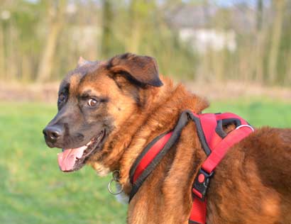 La première fois il a pris la brosse pour un jouet et la mordillait, mais il s'est vite laissé faire, il a certainement remarqué à quel point c'était agréable de se faire brosser ! Lorsqu'on arrête, il se tourne de l'autre côté, comme s'il voulait nous dire: "allez, fait encore ce côté maintenant" :) Il a même déjà eu droit à des vacances en Allemagne.