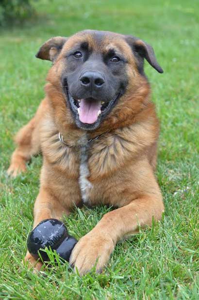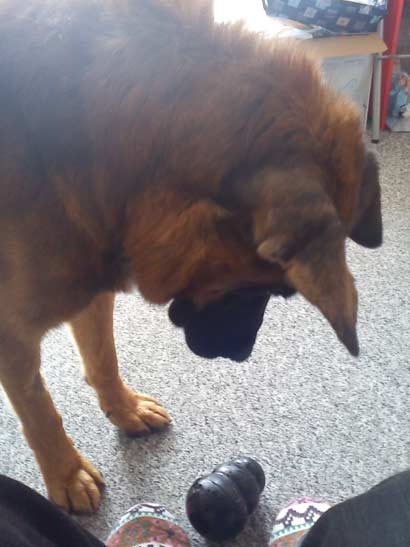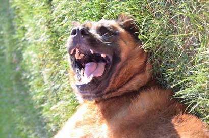 A peine suis-je assise sur l'escalier dehors, que Nasco vient se coucher à côté de moi dans l'herbe et pose sa tête affectueusement sur mes genoux: "Alors, on brosse ou on joue?" S'il aime jouer? Je crois que les images parlent d'elles-même! ;) Il est très assidu à la tâche! Il ne lui a fallu que quelques minutes pour que je lui apprenne le "Ramène, donne", maintenant qu'il a compris le truc il fait ça automatiquement de lui-même. Nasco + un frisbee... et la vie est belle!