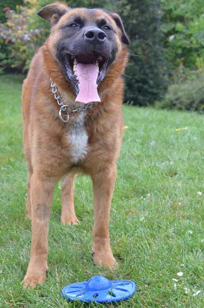 Kaum sitze ich auf der Treppe draußen, sofort ist Nasco da, legt er sich neben mir im Gras hin und setzt seinen Kopf zutraulich auf meinen Schoß: "Na du, wollen wir bürsten oder spielen?" Ob er verspielt ist? Ich glaube die Bilder sprechen für sich allein ;) Bei der Aufgabe ist er ganz fleißig. Mehr als ein paar Minuten hat er nicht gebraucht, damit ich ihn das "Gib mal zurück" beibringe und er das kapiert, und jetzt macht er das von sich allein. Nasco + ein Frisbee... und das Leben ist schön!