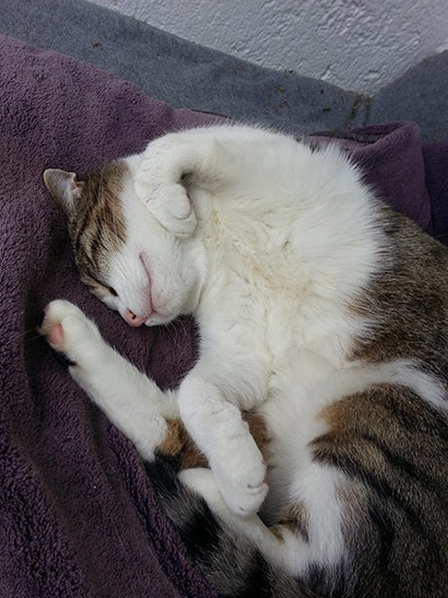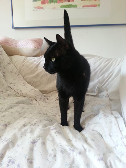 geht es sehr gut. Sie geht viel in den Wald, klettert meisterhaft auf Bäume und ist die zärtlichste Schmusekatze, mit der ich bisher zusammen leben durfte