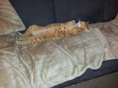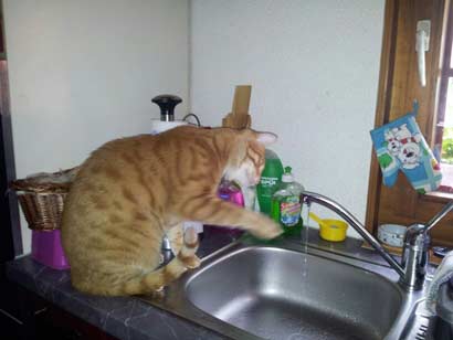 Nur den Namen haben wir sofort verändert. Er heißt jetzt Mogli und hat von Anfang an darauf gehört. Nach einer 1-stündigen Heimfahrt hat dann Mogli sich erst einmal mit der neuen Umgebung bekannt gemacht. Er hat wohl beschlossen, dass es ihm gefällt und mein anderer Kater Scuby wurde erst mal aus dem Haus gejagt. Aha dachte ich Mogli will der Alleinherrscher sein. Schade das Garfield nicht mehr da ist, der würde ihm schon zeigen wo es lang geht. Aber erst einmal machten wir uns richtig bekannt und er hat mich dann wohl als Dosenöffner akzeptiert. Mogli ist ein sehr verschmuster Kater. Er folgt mir im Haus auf Schritt und Tritt. Morgens beim duschen genauso wie Abends bei der Essenzubereitung. Nachdem Mogli ca. 3 Wochen bei uns war kam doch tatsächlich unser Garfield wieder, der in der Gärtnerei hier im Dorf eingesperrt war und keiner hatte es gemerkt.