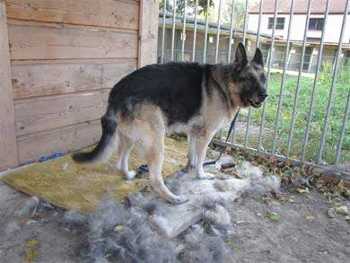 praktisch alle Unterwolle verloren hat, friert er sehr schnell.