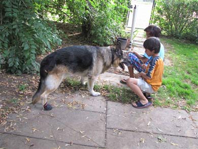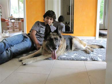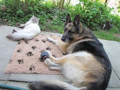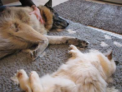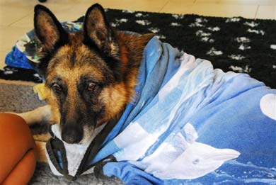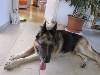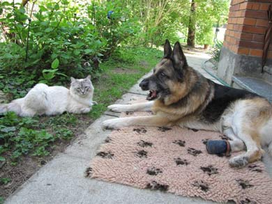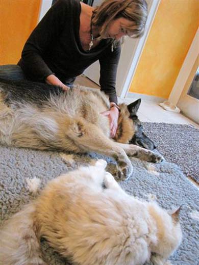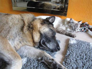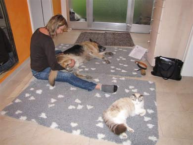 Die Photos zeigen Nok nach dem Bad, mit seinen geliebten Vierbeinern,