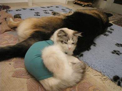 Naiko ist mein weisser Kater, er liebt Nok über alles und würde mit ihm überall hingehen. Alles was Nok macht, macht er auch und er macht es sich bei Nok dann gleich gemütlich...