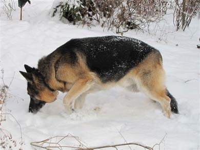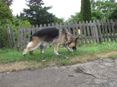 Anfangs Dezember gab es leider wieder einen Zusammenstoss mit einem diesmal herrenlosen Hund. Nok verdrehte sich abermals so, dass er sich die Wirbelsäule verrenkte. Wieder konnte er nicht mehr richtig gehen.