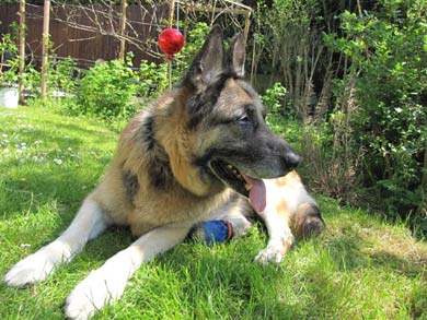14.4. Der Lieblingstierarzt von Nok hat klar gesagt, dass er Nok so noch nicht einschläfern würde. Er ist der Meinung, dass der Tumor noch einige Zeit halten kann. Also sind Nok und ich wieder nach Hause (glücklich, dass er noch eine Weile bei uns ist!!!!!). Nok zeigt mit allem was er hat, dass er noch Kraft hat. Er bellt andere Hunde ganz fest an und bezieht Stellung im Garten, um allen zu zeigen, dass er da aufpasst. Bei schönem und mildem Wetter darf er das. Ansonsten liebt er die Autofahrten nach wie vor und ist am liebsten einfach mit dabei. Es ist schon ein sehr eigenartiges Gefühl mit dem Wissen der tickenden Zeitbombe. Der Tierarzt hat versprochen, dass er zu Nok kommt, wenn er von Nok gebraucht wird. Nun hoffe ich, dass sich das alles auf eine gute und friedliche Art entwickelt.
