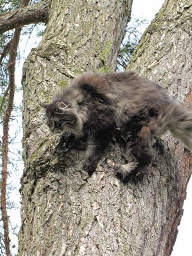 schon probiert hat. Nok steigt den Katzen bis an die Baumstämme
