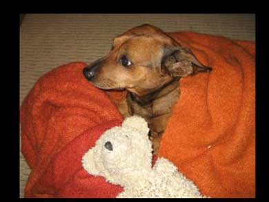 Vor 10 Wochen ist meine liebe Freundin Gina eingeschläfert worden. Sie war plötzlich soooooo krank geworden und kein Arzt konnte ihr mehr helfen. Ich war ganz traurig als sie nicht mehr da war. Ich hab mir alles von ihr abgeguckt und wir waren so ein prima Team nachdem ich vor zwei Jahren zu ihr gezogen bin. Ein Dream-Team sozusagen. Und plötzlich war ich ganz allein. Ich bin dann meistens wieder unter´s Bett gekrabbelt und hab genuckelt. Frauchen hat mich auch abgelenkt, aber wenn sie keine Zeit hatte, war ich - schwups - wieder unter´m Bett.