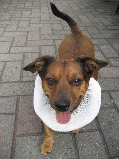 Beiliegend ein Foto mit einem selbstgemachten "Kragen",