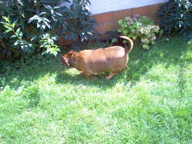 er draußen rum und verfolgt alle ihre Spuren ganz aufgeregt.