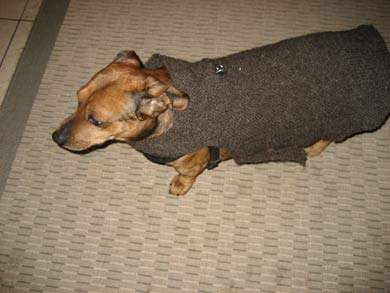 Stange" paßt, hat er ein selbstgestricktes "Mäntelchen"