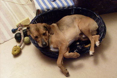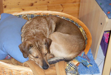 Bei meinen Großeltern ist er mittlerweile der Chef im Haus und hat Bett und Sofa erobert. Ich hätte nie gedacht, dass meine Oma mal einen Hund auf dem Sofa duldet. Aber Olli hat nun seine Hundedecke drauf liegen und nimmt das Angebot gerne an. Auch kann man Olli nach den ganzen Jahren endlich in den Arm nehmen, ohne dass er knurrt oder schnappt. Das hat wirklich lange gedauert, bis er Vertrauen zu uns hatte, dass wir ihm nicht weh tun. Es kann nur vorkommen, wenn ihm was nicht passt (z.B. nach dem Spazierengehen die Füße zu putzen), dass er dann leicht schnappt. Aber wenn man mit ihm schimpft, ist er wieder friedlich.
