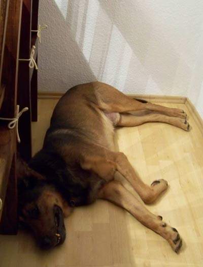 schläft und wartet brav unter meinem Tisch bis wir zusammen