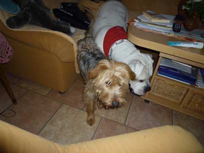 In Haus, Hof und Garten habe ich alles im Griff und nehme meine Aufgaben als Wachhund und Beschützer der Familie sehr gut wahr. Anfangs habe ich ein bisschen an Gewicht zugelegt – ich war manchmal ein Frustesser, wenn Frauchen mal kurz weg war hatte ich Angst sie kommt nicht wieder und habe aus lauter Angst einmal sogar einen ganzen Laib Brot geklaut und gefressen – aber dann war Schluss damit, weil Herrchen und Frauchen von da ab alles weggepackt haben. Mittlerweile ist der Tierarzt mit meiner Figur wieder sehr zufrieden er meint ich hätte schon wieder eine richtige Silhouette!!