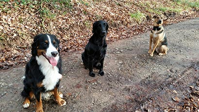 Rocky hat seine Kastration gut überstanden und ist wieder fit wie ein Turnschuh. Er ist ein ziemlicher Rüpel beim Spielen, aber das ist absolut ok. Sonst hätte er mit Nuri auch keine Chance. Die zwei haben viel Spaß am rennen, kämpfen, spielen, Futterbeutel suchen und mit Frauchen kuscheln. Ins Wasser geht er noch nicht so gerne und das werden wir ändern. Denn er rennt bellend am Bachrand entlang, wenn Nuri im Wasser ist. Und sie liebt Wasser. Das Alleinbleiben fällt ihm nur noch am Anfang schwer. Wenn ich aus der Tür gehe bellt er lautstark, beruhigt sich aber nach 2-3 Minuten und wartet dann ruhig ab. Heute hat er sich das erste Mal von alleine beruhigt, als er mit Nuri vor der Bäckerei warten musste.