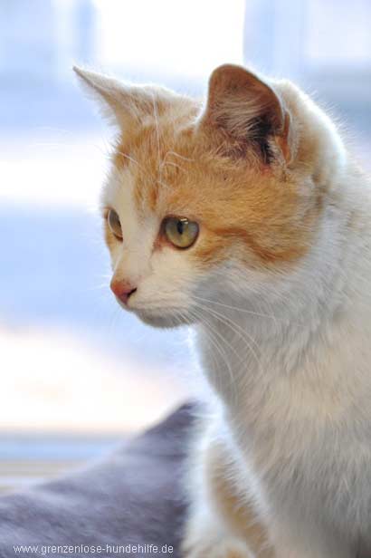Oscar geht es gut, er ist sehr gewachsen und ist inzwischen sehr oft selbständig unterwegs. Er kann über eine Katzenleiter von Balkon aus rein und rausgehen, und das genießt er. Zwei ältere Katzen, die meiner Nachbarin gehören, haben sichtlich auf ihn aufgepasst, als er am Anfang noch klein war und Erfahrungen sammeln musste. Inzwischen hat er auch schon zwei Mal eine Maus als Geschenk nach Hause gebracht ! Also, ihm geht’s gut, er ist gesund und wir sind alle sehr zufrieden.
