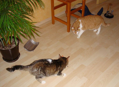 mit einander aus. Auch die eine Nachbarkatze Tequila ist Paulchens