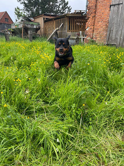 Unsere Mila ist ein kluges Mädchen und hört inzwischen ganz gut. Ihre anfängliche abweisende Art Besuchern gegenüber hat sich gewandelt und heute freut sie sich über fast jeden Kontakt. Wir haben von klein an, sie an Kinder gewöhnt und so ist es heute kein Problem. Mit den Nachbarskindern von 1, 4 und 11 Jahren kommt sie gut zurecht. Ansonsten ist sie voller Energie und immer für einen Spass zu haben :)) Liebe Grüße
