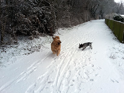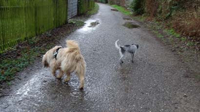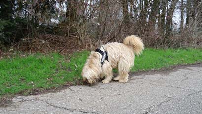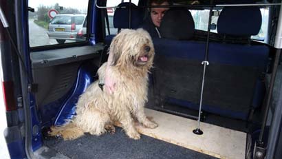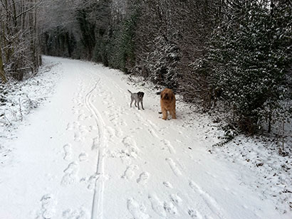 Schon am dritten Tag hat er entdeckt, dass man vom Fenster aus nicht nur Herrchen und Frauchen verabschieden kann (jetzt sitzen zwei Hunde da und schauen hinterher), sondern auch je nach Gusto Menschen und Tiere anbellen kann, die draußen vorbeigehen. Das betrifft manchmal auch mitten in der Nacht den Zeitungsausträger. Der Hütehund kommt schon durch, aber dennoch mit einer Liebenswürdigkeit, die beeindruckt. Auch den Weg nach Hause hat er sich schnell eingeprägt und steuert vorweg laufend in die richtige Richtung. In der ersten Woche waren wir auch bei unserem Tierarzt und trafen dort eine Fachangestellte, die auch bei sans frontières e.V. aktiv ist. Die Freude war groß, dass Poldi in ihrer Nähe ist. Übrigens ist alles in Ordnung und Poldi ein gesunder Hund. Mitte Februar steht noch der Friseur-Termin an, da sich die Verfilzungen und Kletten in der Unterwolle beim Kämmen nicht entfernen lassen.