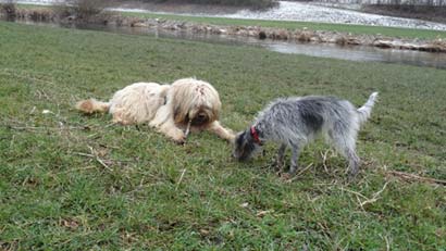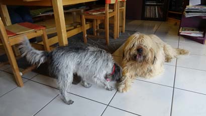 9.1.2017: Heute auf den Tag genau vor einem Jahr konnten wir Poldi (alias Pollux) im Tierheim Mulhouse abholen. Schon von Anfang an schlich sich der Charmeur in unsere Herzen und auch unsere Hündin Paula gewöhnte sich schnell an den großen Zottel. Im Februar 2016 ging es zum ersten Mal zur Schur, die wir nicht ganz so extrem im August 2016 wiederholen ließen.