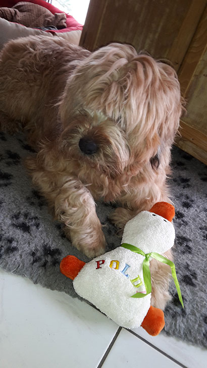 Januar 2016 Am Samstag, 9.1. 2016 durften wir Pollux, den wir auf Poldi umgetauft haben, im SPA Mulhouse übernehmen. Danke an Susan Kempf, die sich trotz Urlaub um einen schnellen Besuchstermin gekümmert hat und den wir am Montag, den 4.1. wahrgenommen haben. Ich denke, es war Liebe auf den ersten Blick. Der kleine und stürmische Wuschelbär hat sich auch mit unserer jungen Hündin Paula verstanden und damit gab es nur noch eine Hürde zu überwinden. Die Vorkontrolle fand am Donnerstag statt und war unproblematisch. Schon abends kam der positive Bescheid und der Termin zur Übernahme wurde ausgemacht.