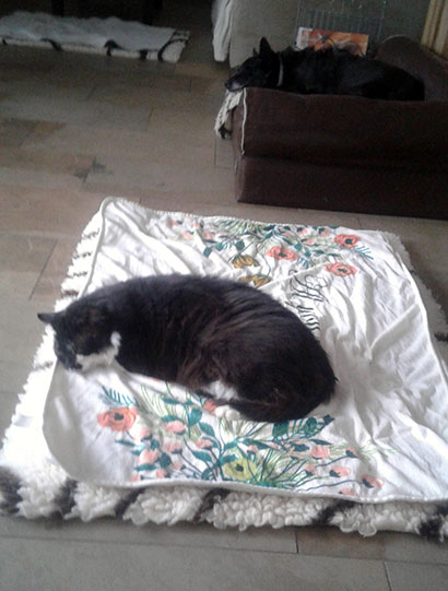 Macht seinen Kontrollrundgang durch den Garten u haut sich danach mit seinen 2 Spezialskumpels gemütlich in mein Bett und chilled. Ich kann es nur immer wieder sagen: