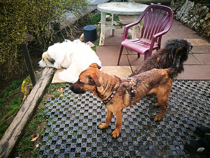 Rantan hat eine neue Freundin. Die altdeutsche Schäferhündin Chrissy hat ihn mit ihren 13 Monaten ordentlich gefordert ;)