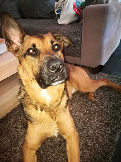 Er ist immer mit Eifer in seinem Hundekurs dabei und versucht einfach alles richtig zu machen. Manchmal gehen die Pferde etwas mit ihm durch und er bricht die Slalomübung für ein kurzes "Fang-mich-doch" auf der Hundewiese ab. Inzwischen fordert er uns regelrecht zum Spielen auf, offensichtlich hat er gelernt, dass gemeinsames Spiel viel mehr Spaß macht. Wir würden mit ganzem Stolz behaupten, dass er endlich so richtig angekommen ist, er hat inzwischen sogar ein bisschen an Gewicht zugelegt. Hin und wieder tut Rantan auch gerne mal so, als hätte er spontan vergessen, was dieses ominöse "Sitz!" oder "Geh auf deinen Hundeplatz!" bedeuten soll, das typische Austesten eines jungen Wilden auf seinem Weg zum Erwachsensein eben.