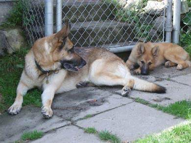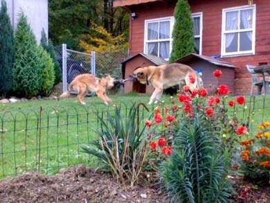 ein warnendes Wuff mit piepiger Welpenstimme und 3 ausgewachsene